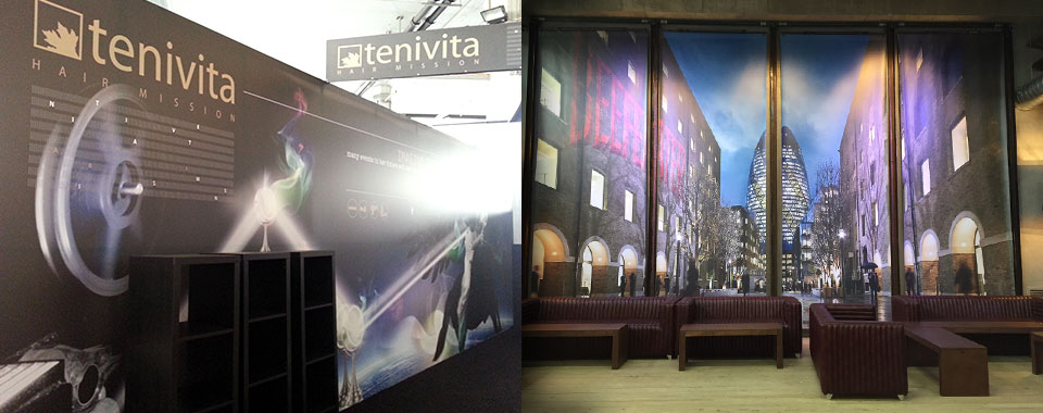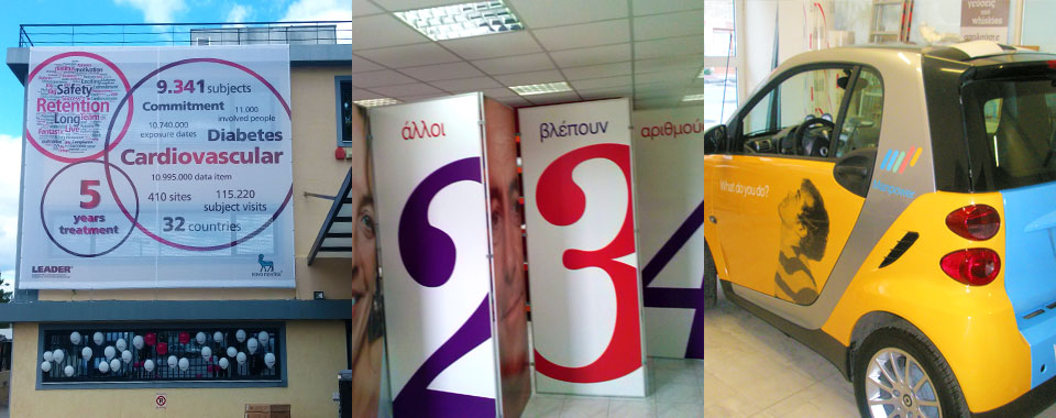 Κάλυψη κτηρίων - υαλοπινάκων, εκθεσικά περίπτερα, συνέδρια, φιλοτέχνηση εσωτερικών χώρων,